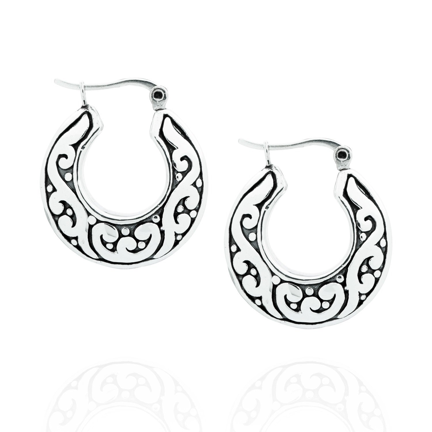 Deze delicate zilveren oorbellen met oosterse patronen voegen een speciaal tintje toe aan elke look. Gemakkelijk te dragen en veelzijdig, ze combineren traditionele oosterse ontwerpelementen met hedendaagse elegantie.