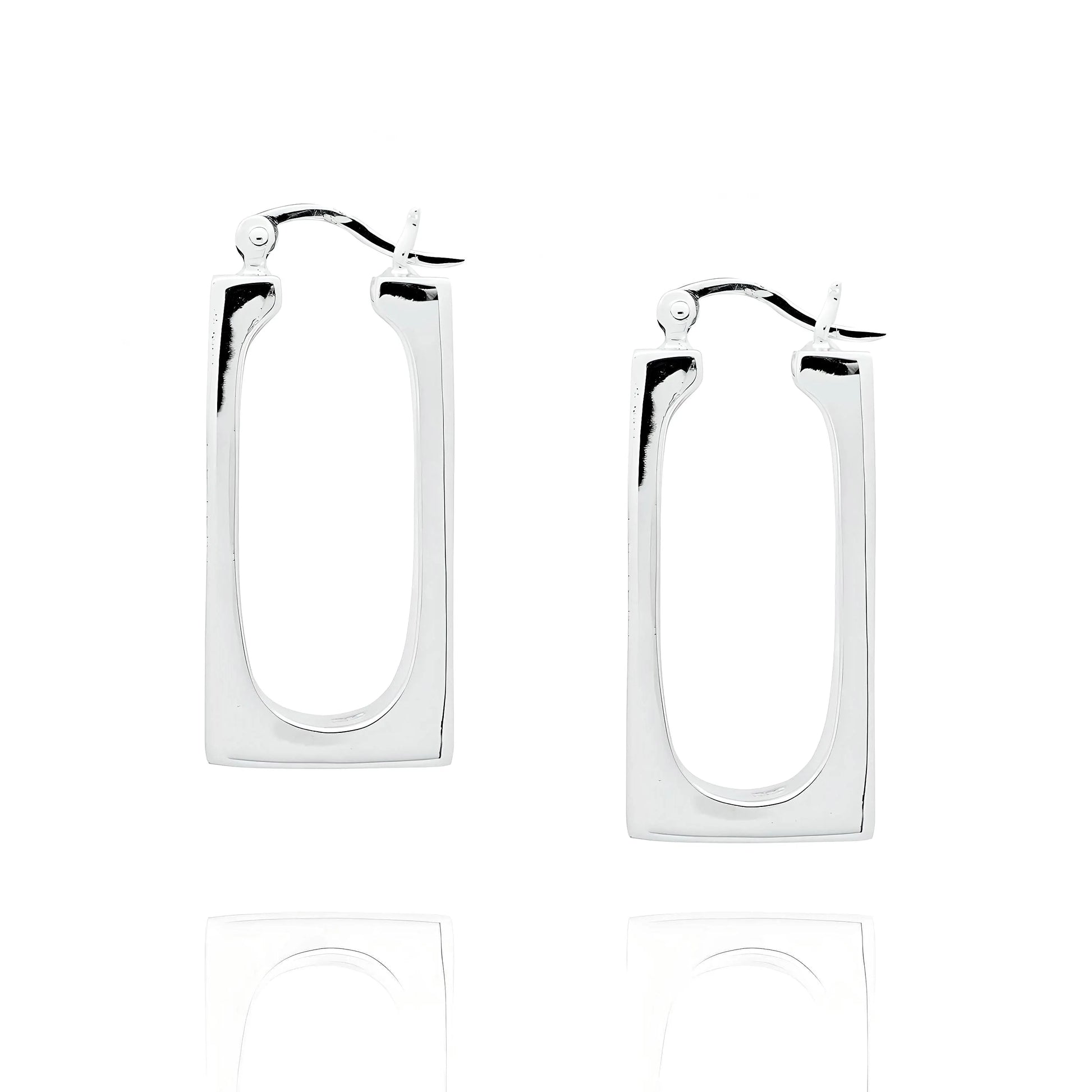 Moderne rechthoekige zilveren oorringen die imponeren met strakke lijnen en ingetogen elegantie. Deze lichtgewicht oorbellen voegen een eigentijdse vleugje verfijning toe aan je look en zijn geschikt voor elke gelegenheid, van alledaags gebruik tot speciale evenementen.
