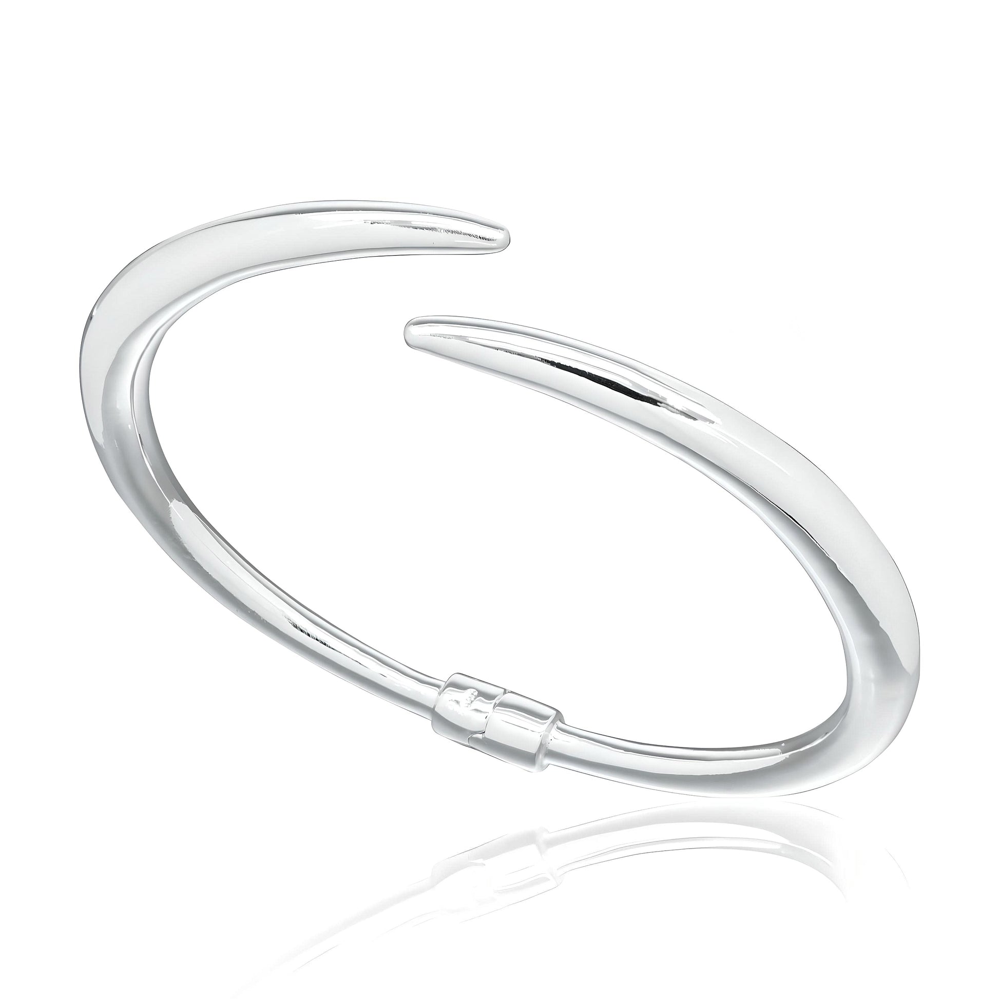 Elegante, minimalistische open spangarmband van zilver. Tijdloos design voor moeiteloze styling, elke dag en bij speciale gelegenheden. Past perfect om elke pols.