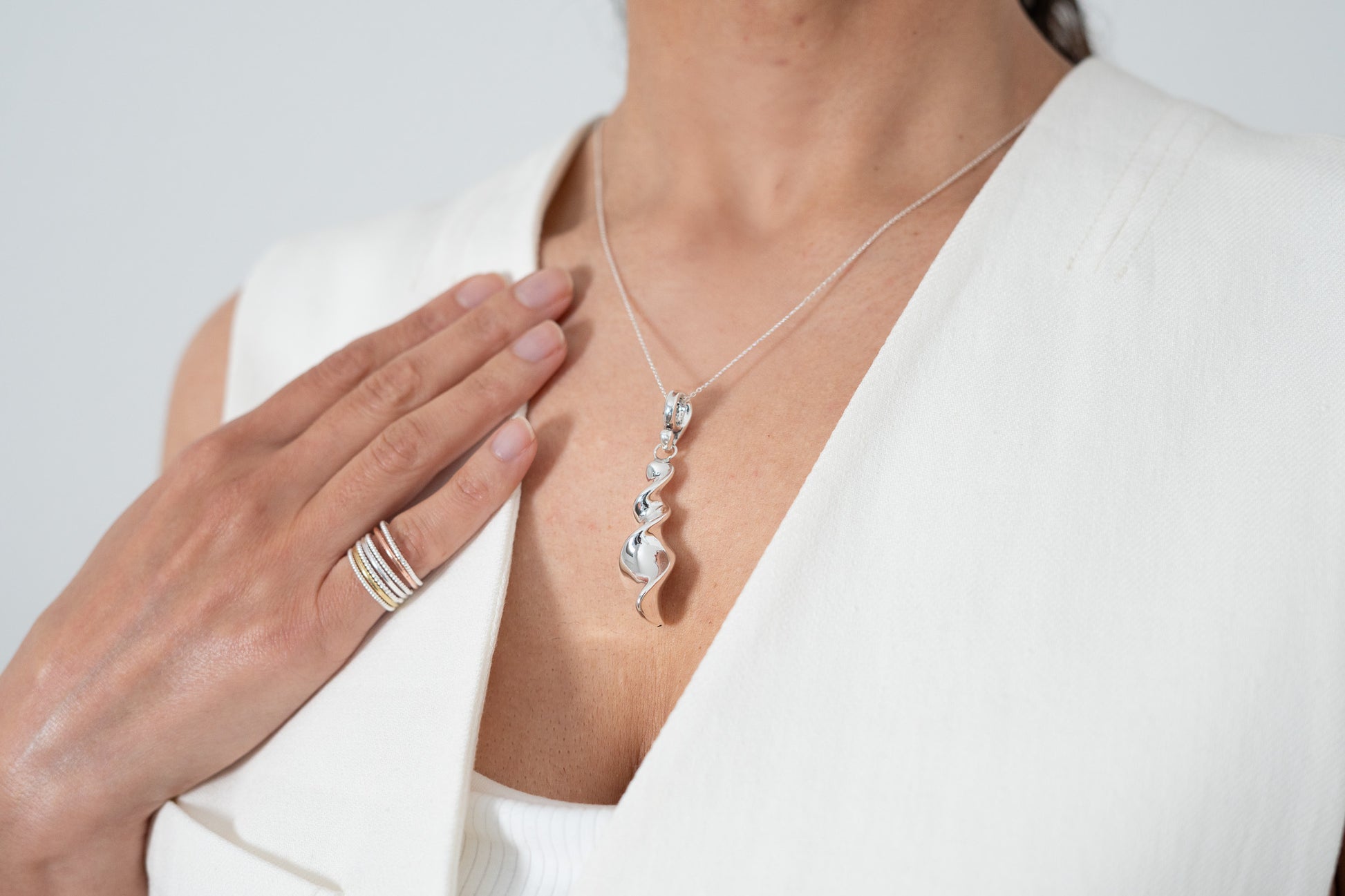 Vloeiend en modern: De Swirl hanger van sterling zilver maakt indruk met zijn gebogen vorm – subtiel, maar toch expressief.