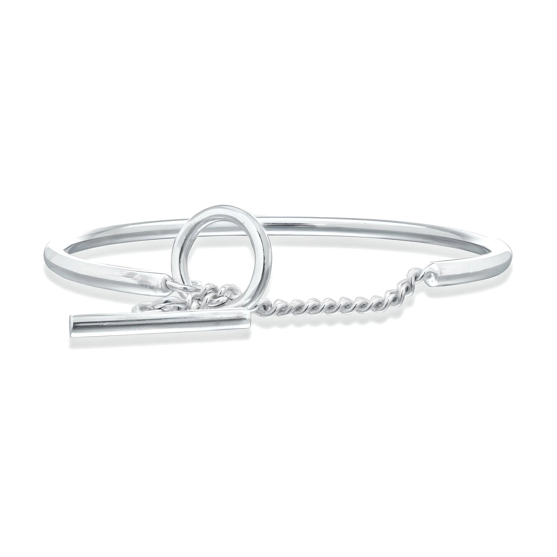 Een stijlvol statement: Deze zilveren armband met opvallende knevelsluiting combineert elegantie met een moderne kettinglook. Perfect voor elke gelegenheid – alleen te dragen of te combineren met andere sieraden.